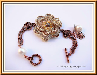 Jó rég voltam itt. Január óta újra dolgozok nincs sok idő a gyöngyre de azért fűzögetek. Ismét virág gyűrű, elég nehéz volt fotózni mert egyszínű és nem annyira válnak el a szirmok. Ez most nagyobb mint az előzőek, a közepében onix van gyönyörű fénnyel.